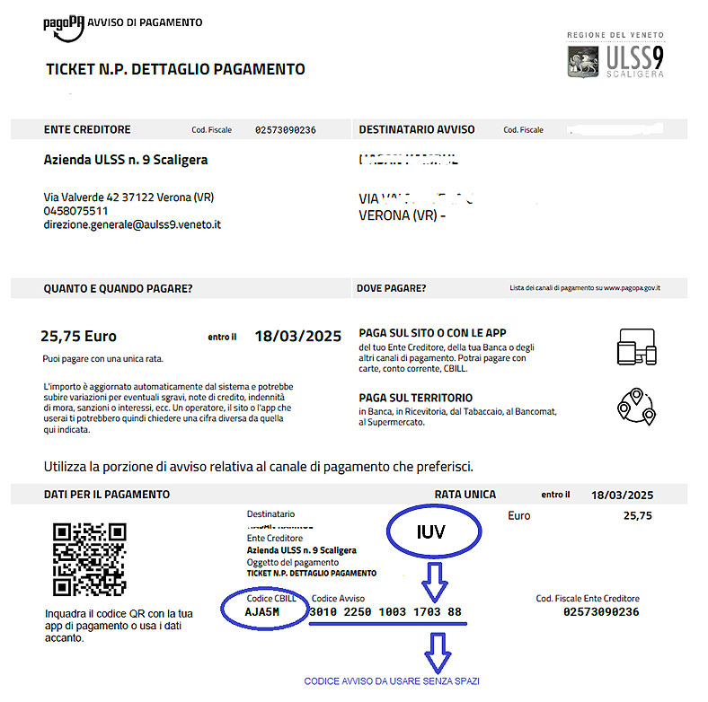 Per le prestazioni a pagamento la ULSS 9 Scaligera rilascia un documento con la richiesta di pagamento. Tale documento può essere un: