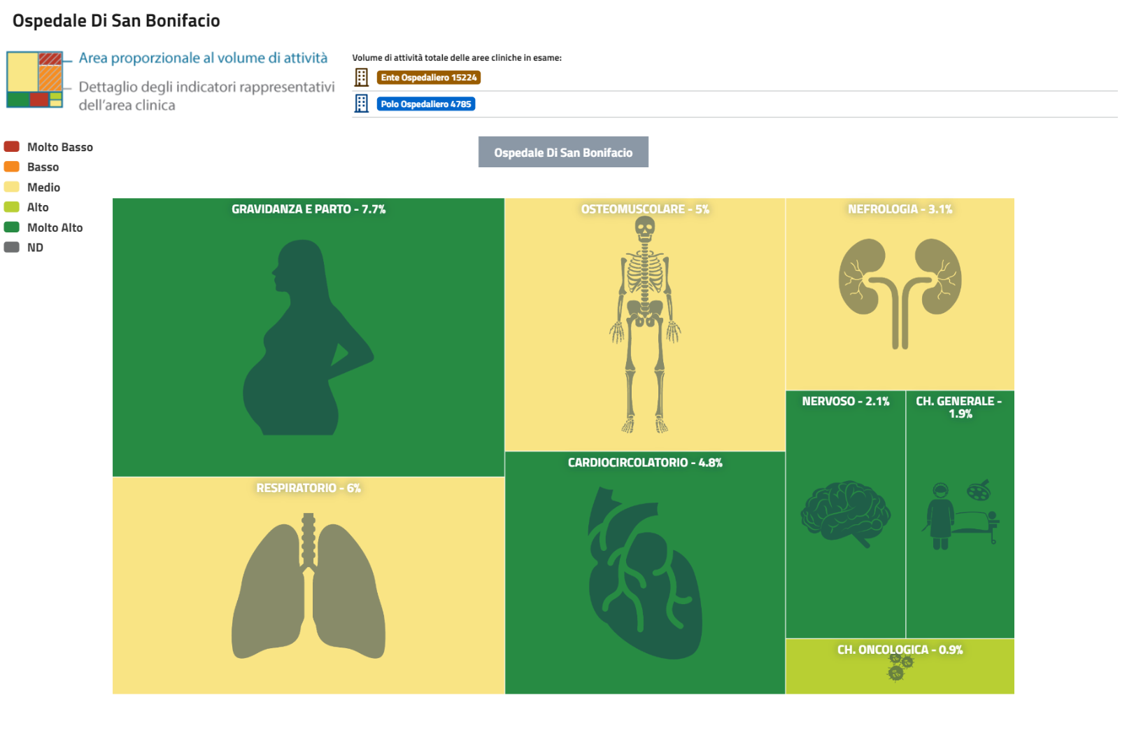 | PNE 2024 Treemap 2023 Aree Cliniche proporzionali ai volumi di attività delle strutture. Ospedale di San Bonifacio | Scarica |
