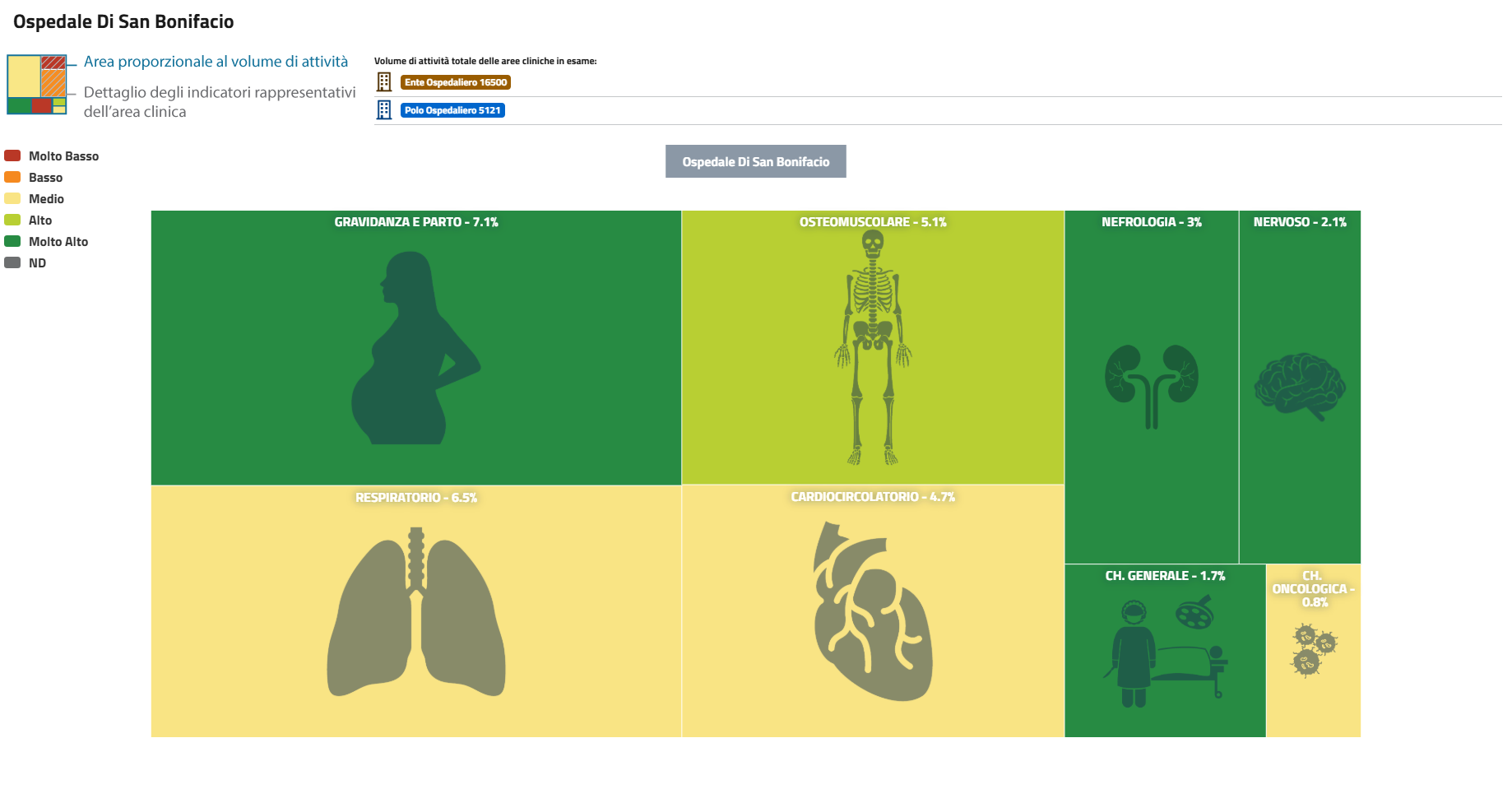| PNE 2016 - Treemap Aree Cliniche proporzionali ai volumi di attività delle strutture. Ospedale di San Bonifacio | Scarica |