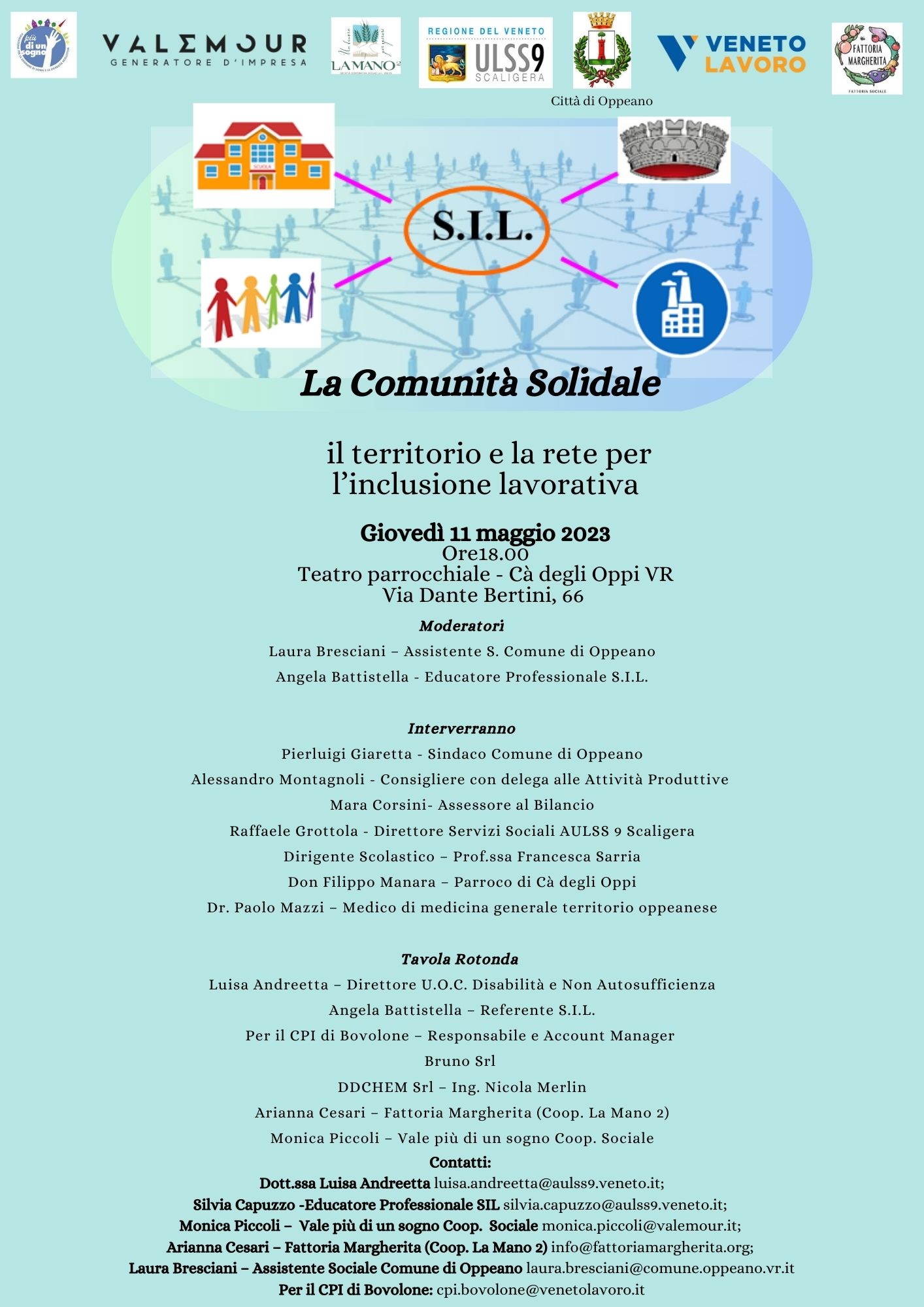 "La comunità solidale - Il territorio e la rete per l'inclusione lavorativa", organizzato dal S.I.L. Servizio Integrazione Lavorativa dell'Azienda ULSS 9 Scaligera, in collaborazione con il Comune di Oppeano, Enti del Terzo Settore ed Aziende. La tavola rotonda ha come scopo la sensibilizzazione della comunità all'inclusione lavorativa.