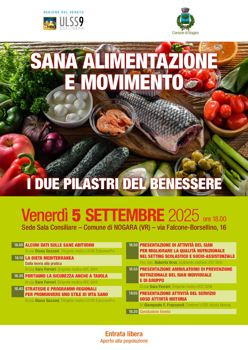 Sana alimentazione e movimento - I due pilastri del benessere”, organizzato dall’Azienda ULSS 9 Scaligera in collaborazione con l’Amministrazione comunale.