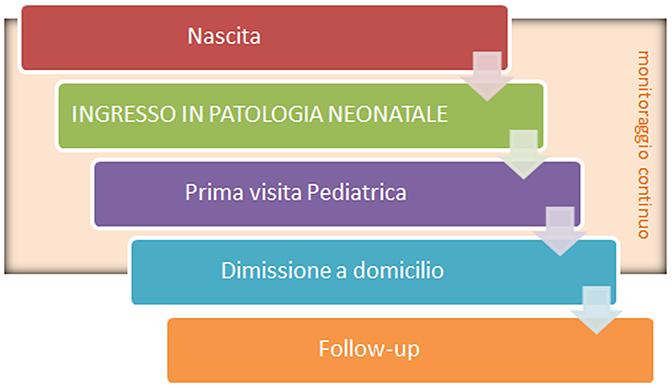 Il neonato viene accolto nel reparto di Patologia Neonatale, ambiente specializzato e protetto. L’accesso della madre al reparto è garantito in qualsiasi momento della giornata, per favorire la vicinanza, il contatto e l’allattamento al seno. Se l’ingresso in Patologia Neonatale avviene subito dopo la nascita per situazioni di criticità del neonato, il contatto pelle a pelle sarà recuperato in un secondo momento. L'ingresso in Patologia Neonatale solitamente avviene in condizioni di emergenza subito dopo la nascita del bambino, talvolta però possono subentrare quadri clinici che richiedono tali cure anche in un secondo momento.